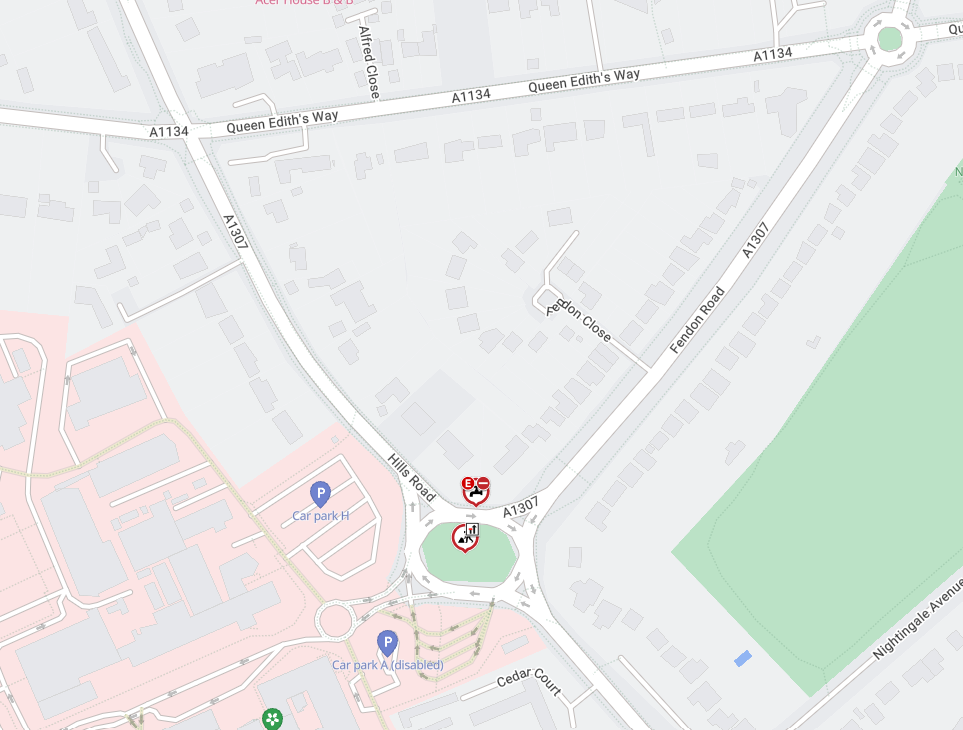 Fendon Road exiting Addenbrookes roundabout northbound is closed and Hills Road southbound has a lane closure in place on the approach to the burst main on the roundabout. Cambs Water expect to be onsite most of the week. Slight delays of 3 minutes northbound on Hills Road currently.